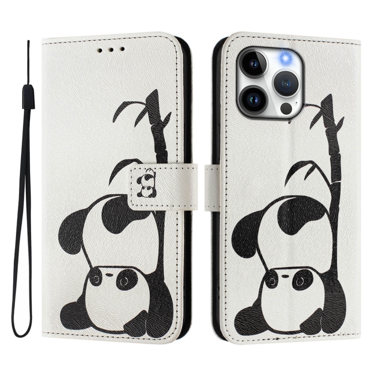 Funda de Cuero para iPhone 16 Pro con Diseño de Dibujos en Colores (Panda)