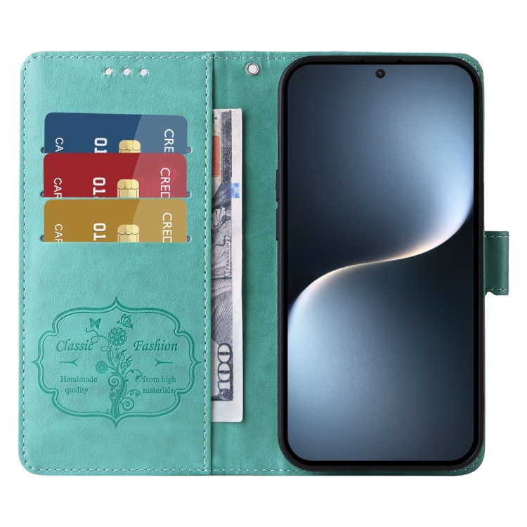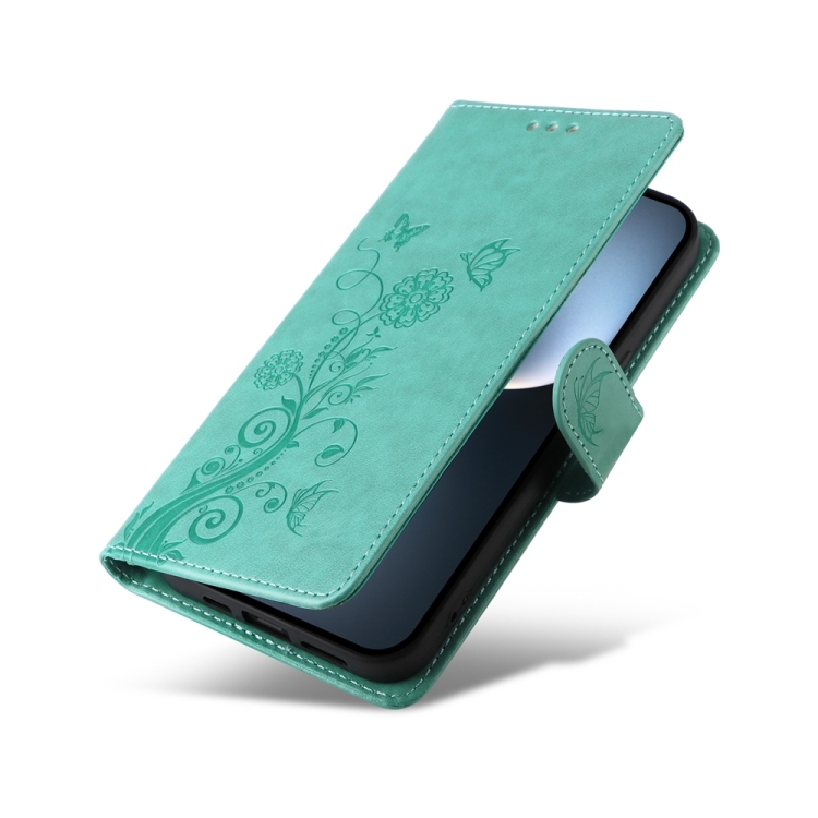 Funda de Cuero para Honor Magic7 Diseño Mariposas y Flores En Relieve (Verde)