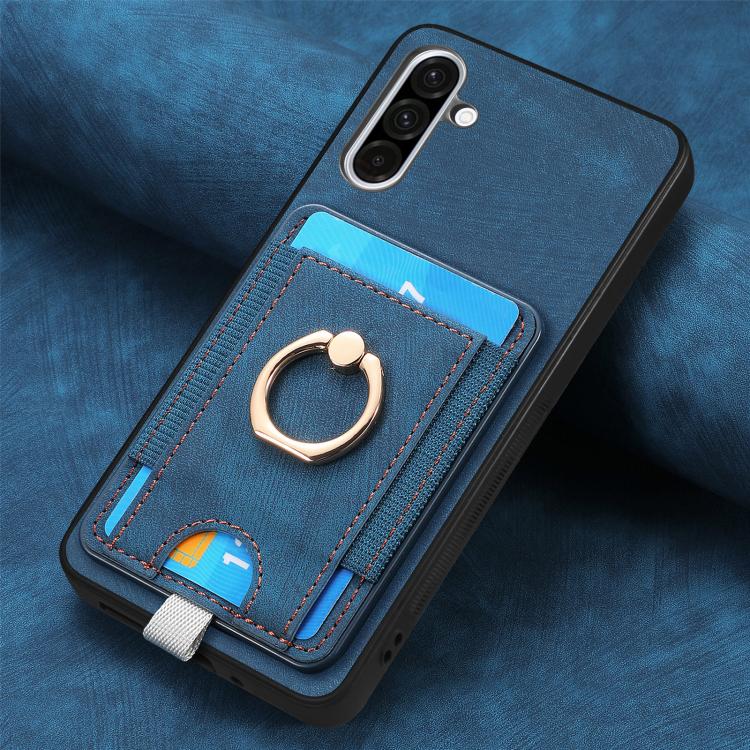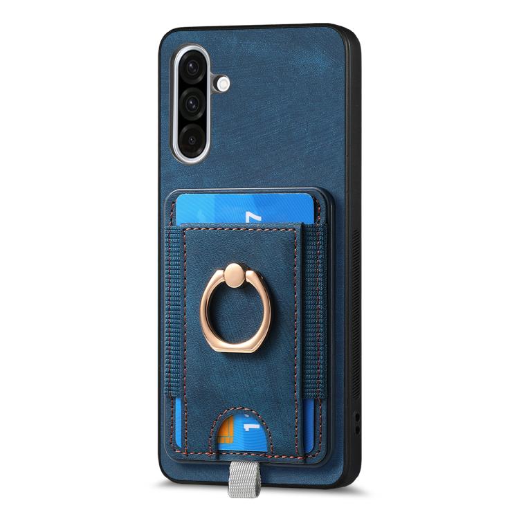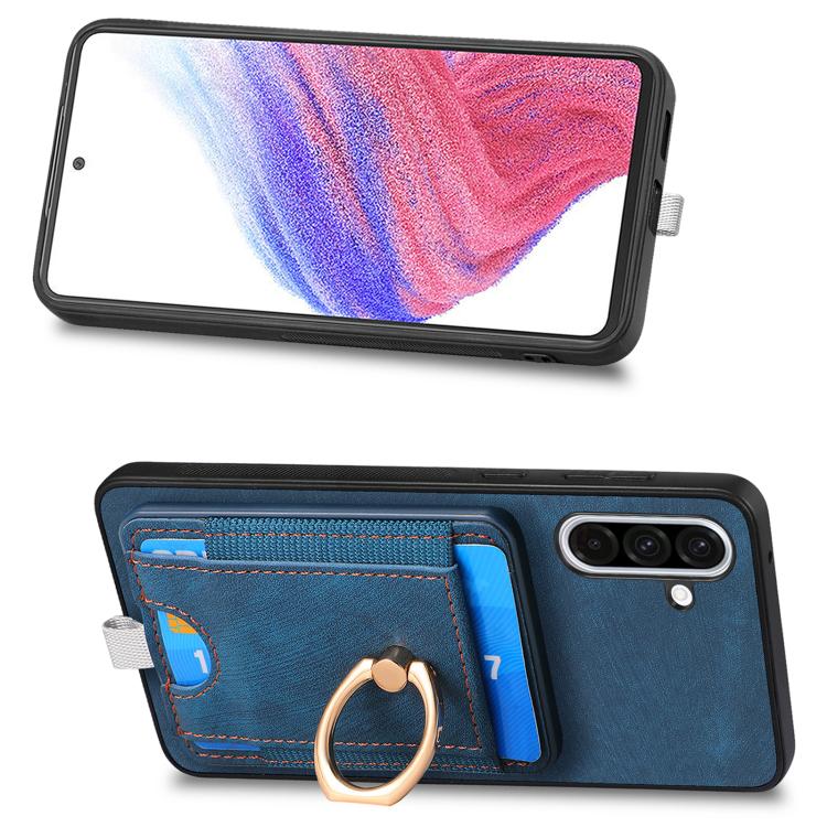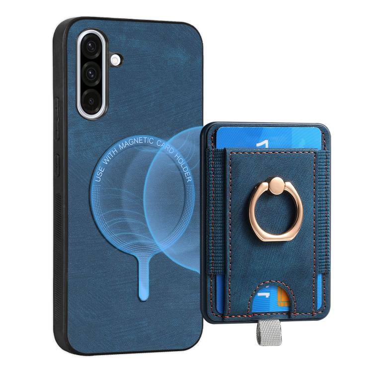 Funda para Teléfono Samsung Galaxy A36 Cuero Diseño Retro Divisible con Tarjetero Magnético (Azul)