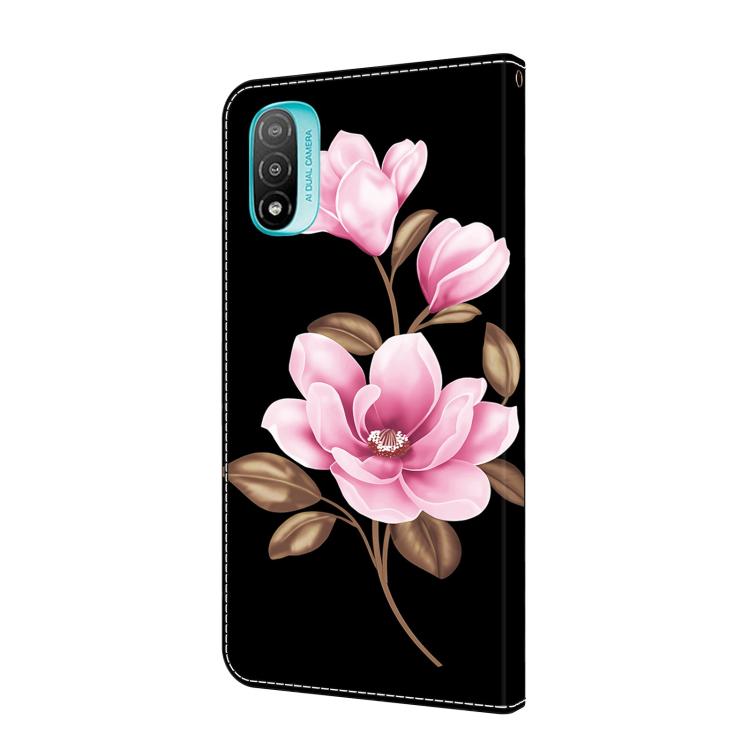 Funda de Cuero Pintada a Mano para Motorola Moto E20 (Flores Negras)