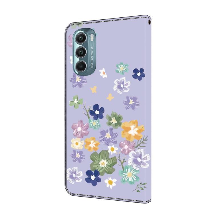 Funda de Cuero Pintada a Mano para Motorola Moto G Stylus 5G 2022 (Floral Morado)