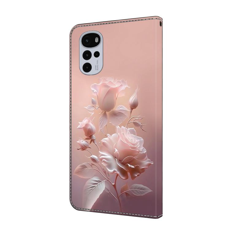 Funda de Cuero Pintada a Mano Motorola Moto G22 Flores de Cerámica