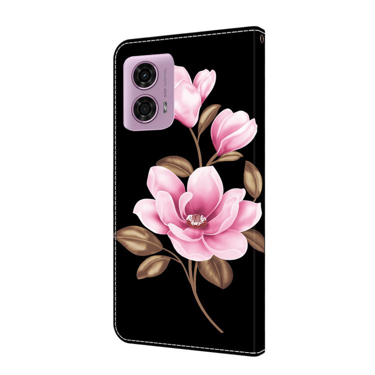 Funda de Cuero Pintada a Mano Motorola Moto G24 (Flores Negras)