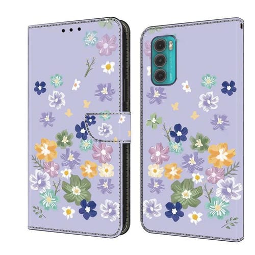 Funda de Cuero Pintada a Mano para Motorola Moto G60 (Floral Morado)