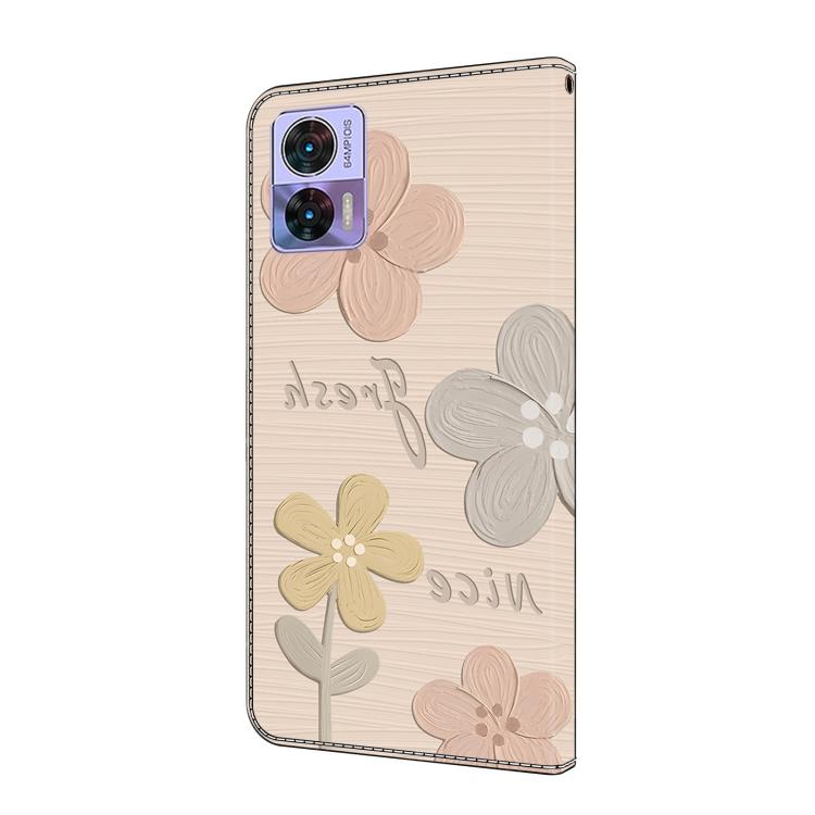 Funda de Cuero Pintada a Mano para Motorola Edge 30 Neo (Flores Beige)