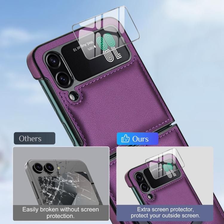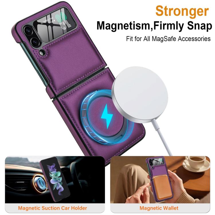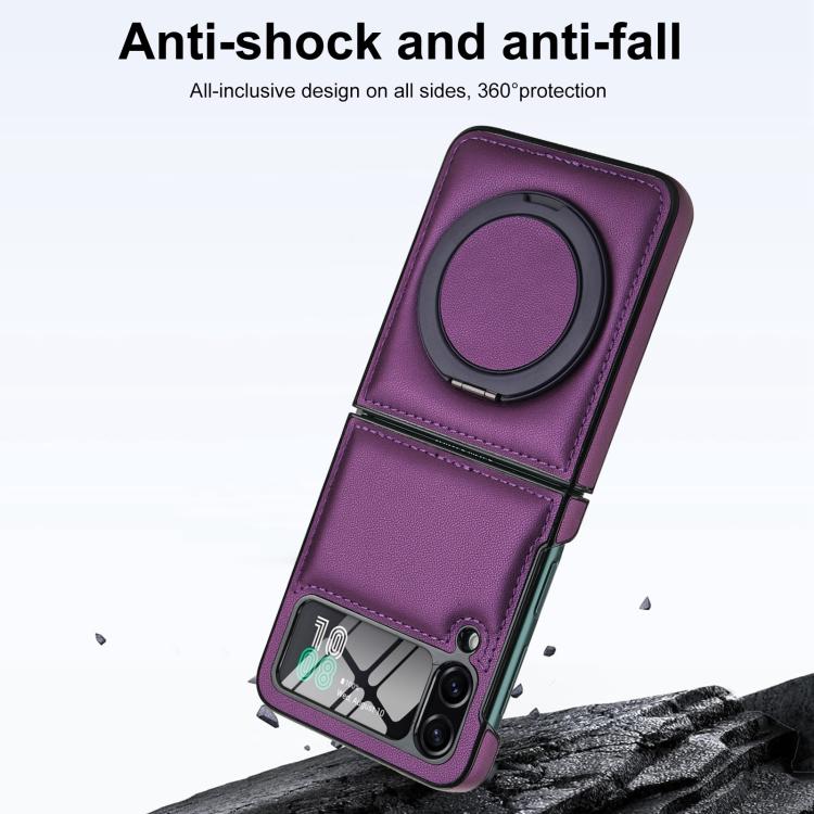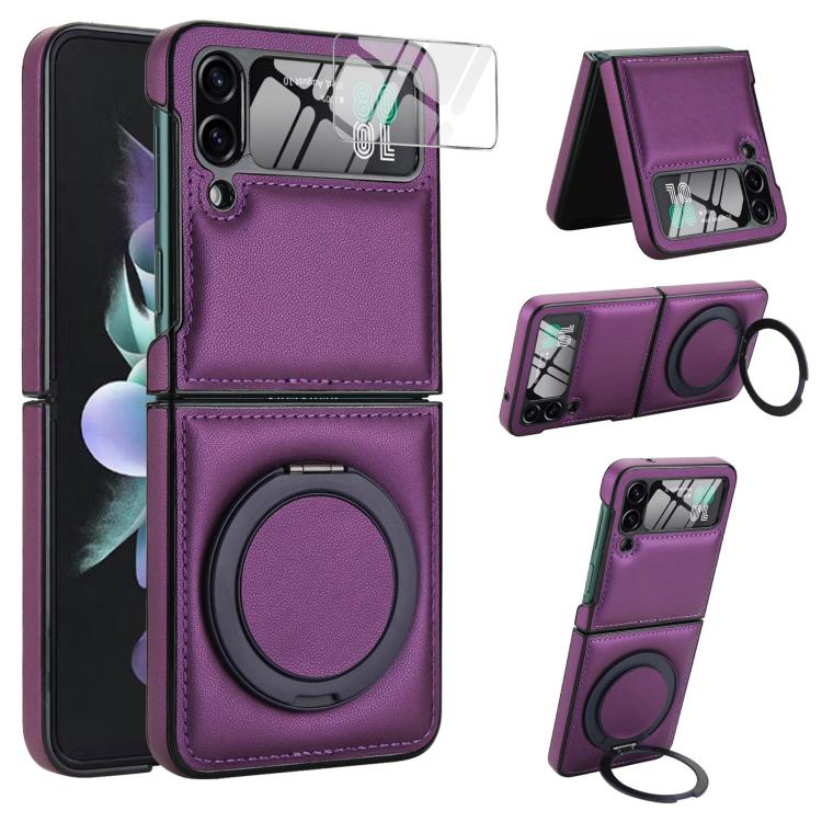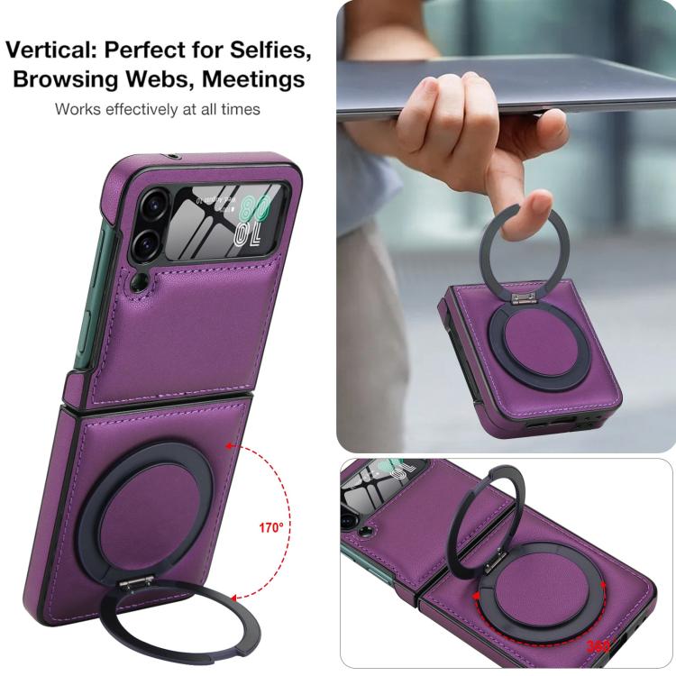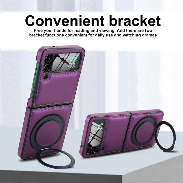Funda de cuero plegable con soporte giratorio y película MagSafe para Samsung Galaxy Z Flip3 5G (morado oscuro)