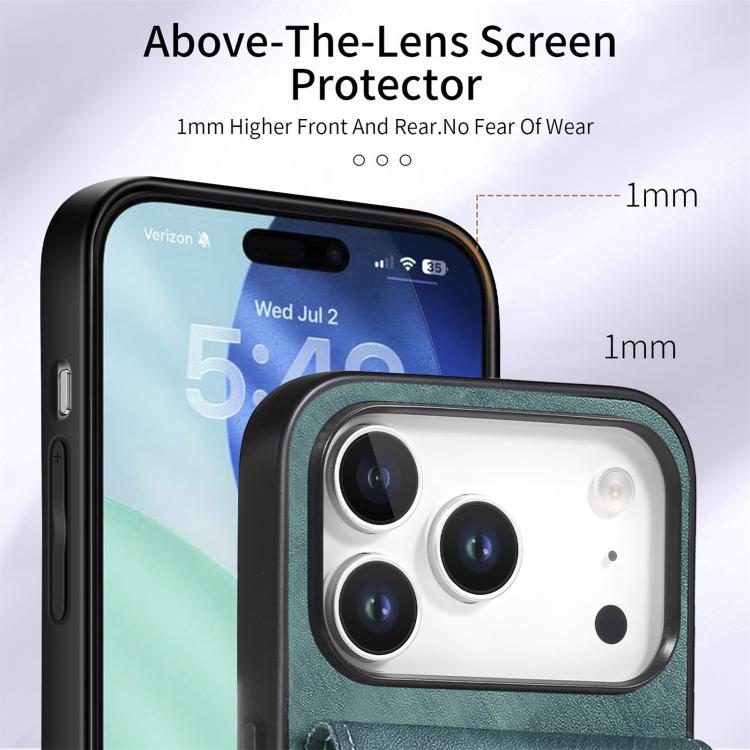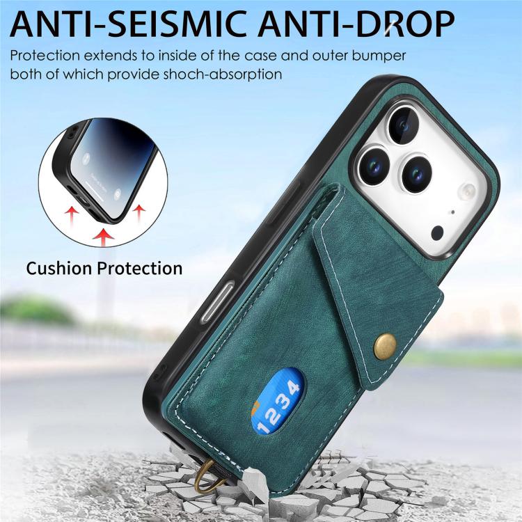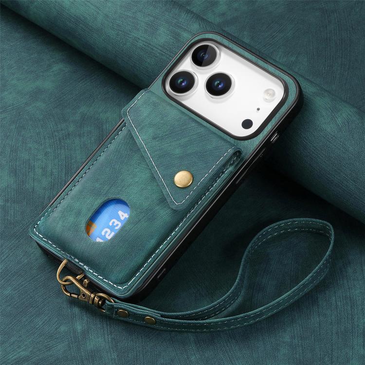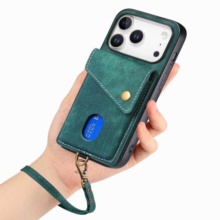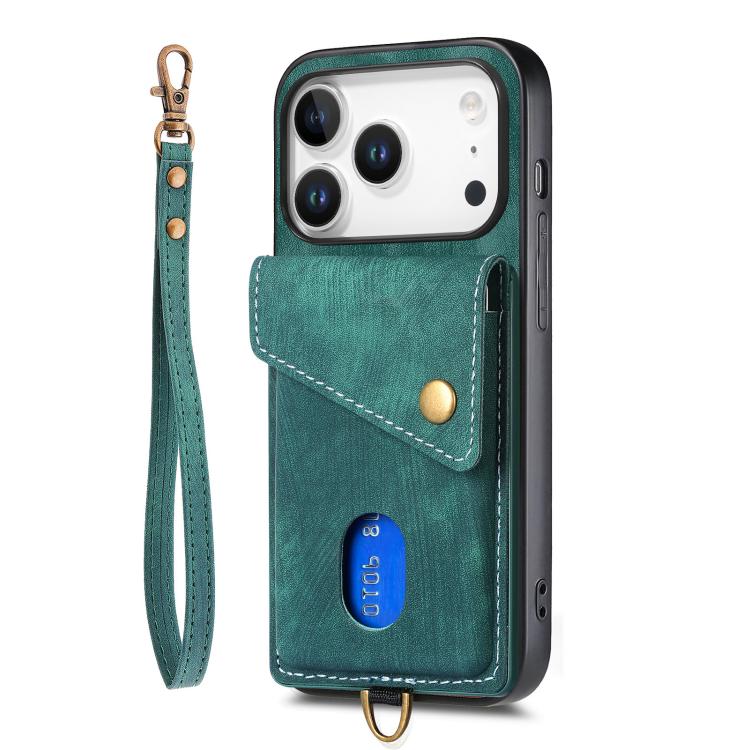 Funda de cuero plegable con tarjetero retro para iPhone 17 Pro con correa (verde)