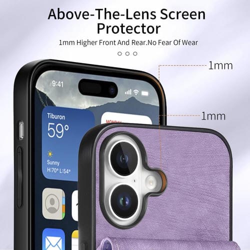 Funda de cuero plegable estilo billetera retro para iPhone 17 con correa (morado)