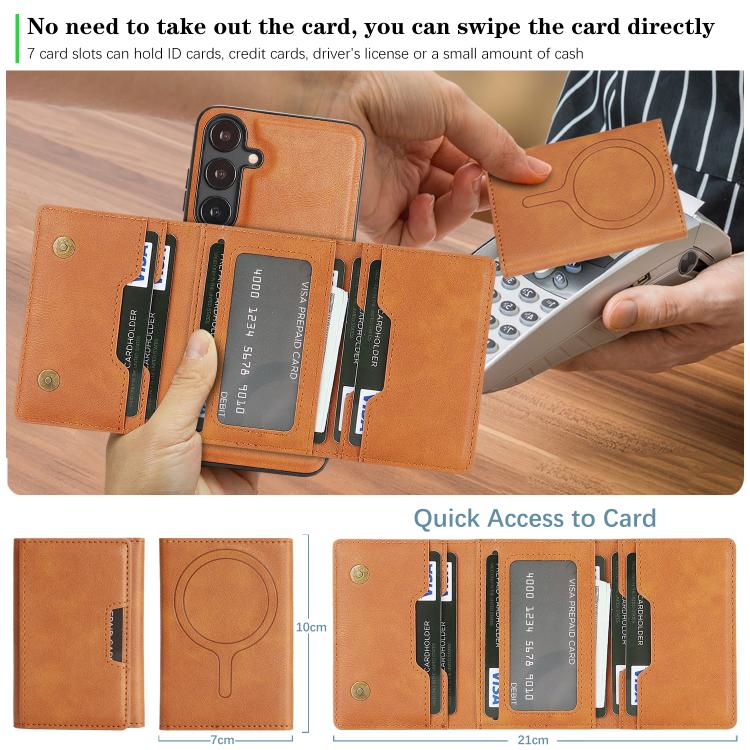 Funda de cuero plegable triple Kalebol con imán fuerte MagSafe para Samsung Galaxy S23 5G (marrón)