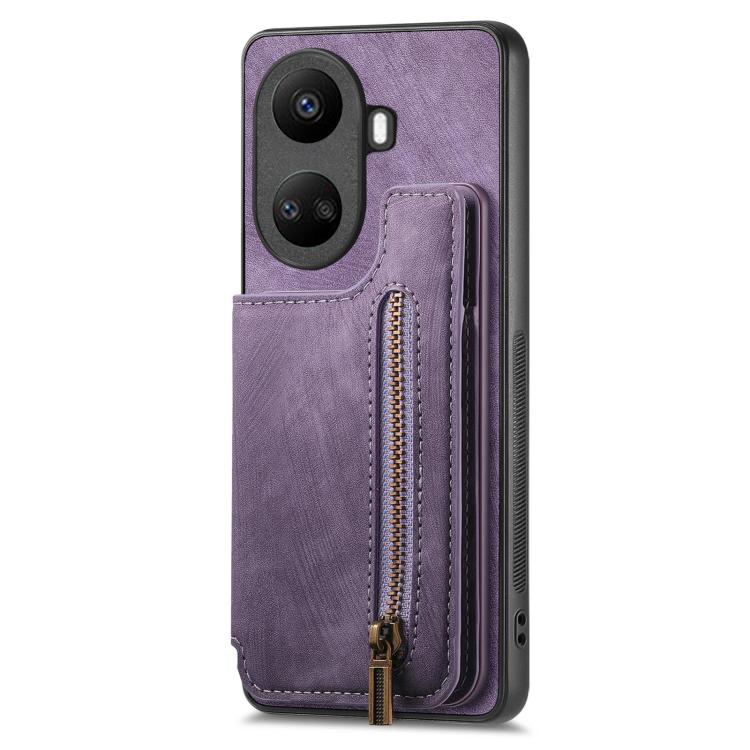 Funda de Cuero Retro con Cremallera para Huawei Nova 10 Se (Morado)
