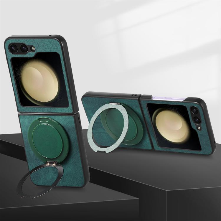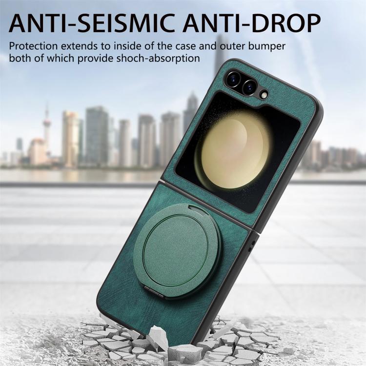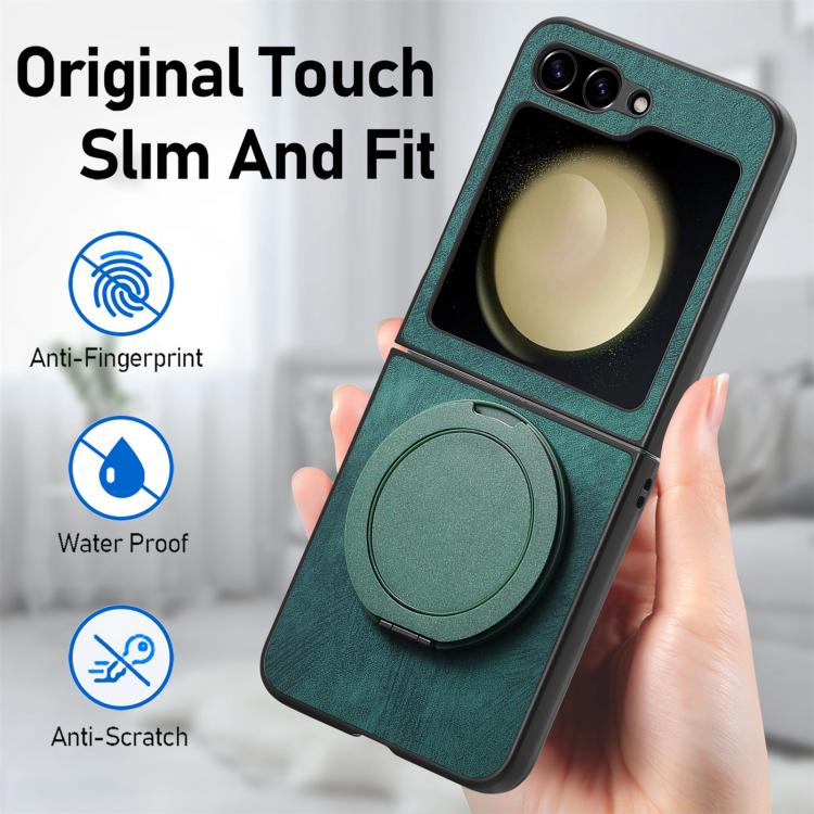 Funda de cuero retro con soporte giratorio para Samsung Galaxy Z Flip6 5G (verde)