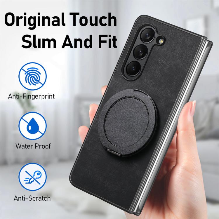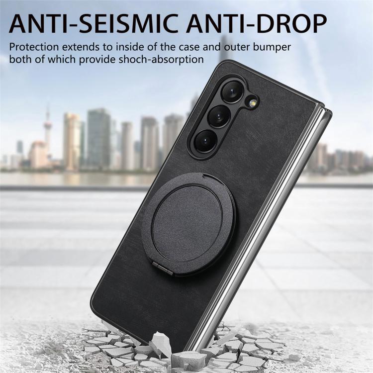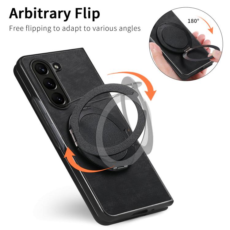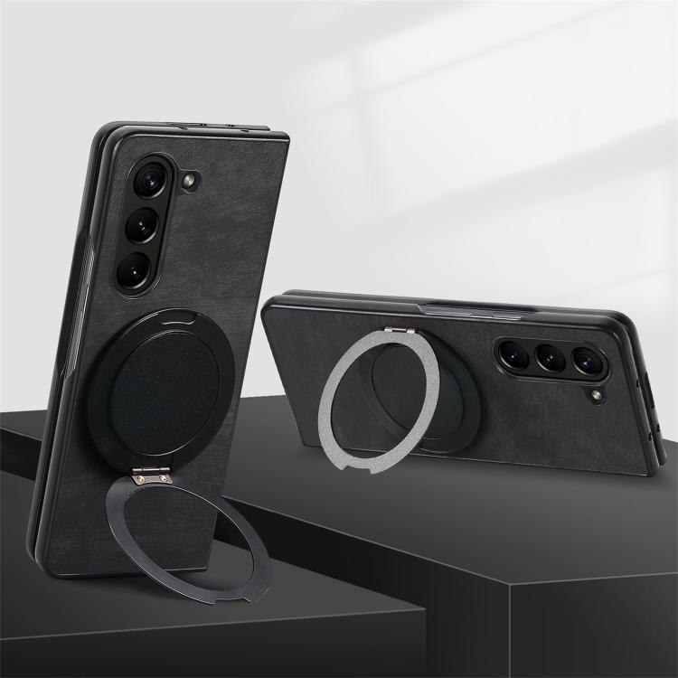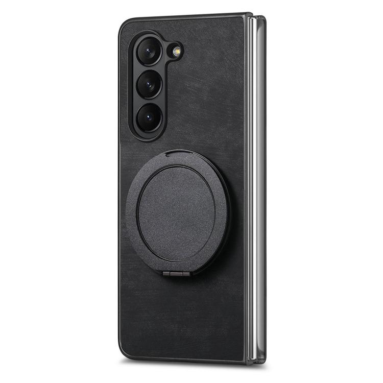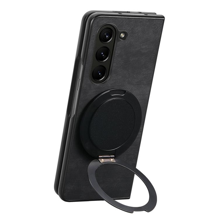 Funda de cuero retro con soporte giratorio redondo para Samsung Galaxy Z Fold4 (negro)