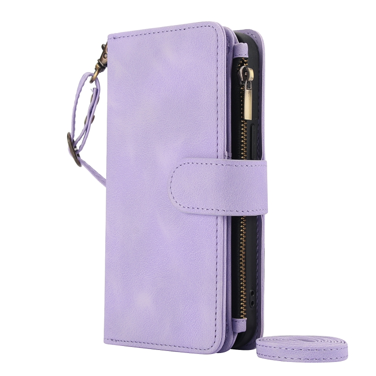 Funda de Cuero Rfid con Cremallera para iPhone 16 Pro Dream con 9 Tarjetas y Cordón (Morado)