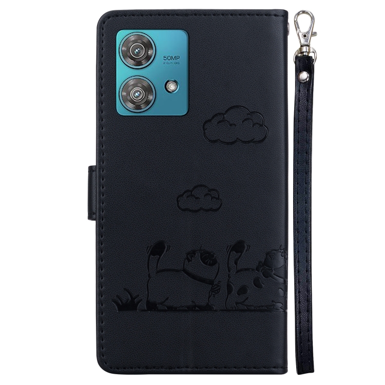 Funda de Cuero Rfid para Motorola Edge 40 Neo con Diseño de Gatos (Negra)