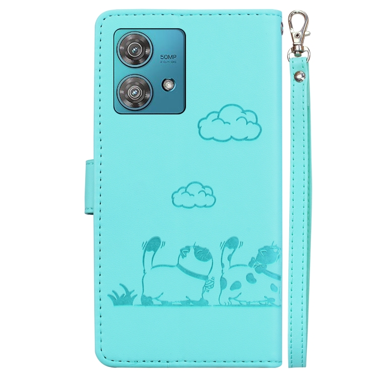 Funda de Cuero Rfid para Motorola Edge 40 Neo con Diseño de Gatos Lindos (Verde)