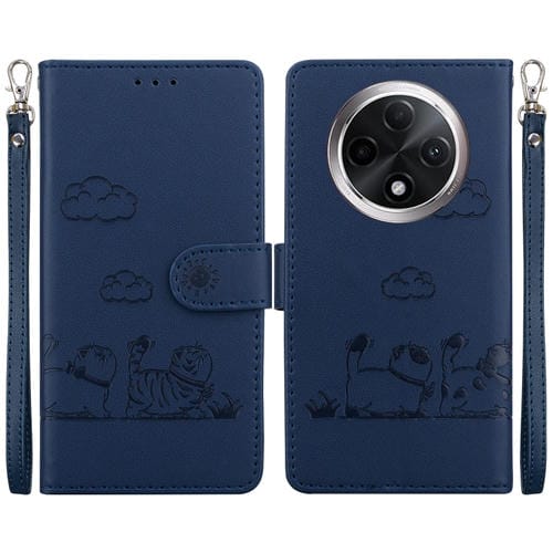 Funda de Cuero Rfid con Diseño de Gatos para Oppo A3 Pro 5G Global (Azul)