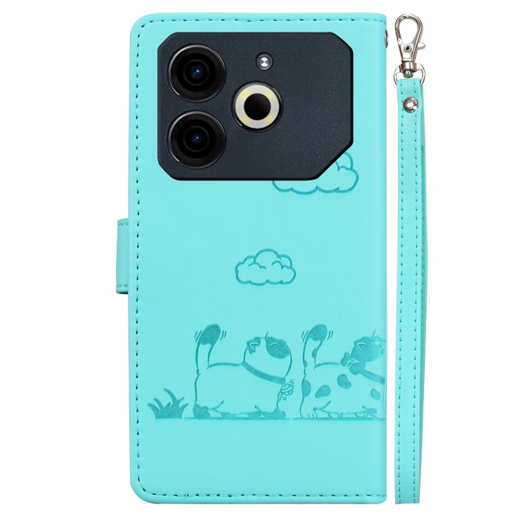 Funda de Cuero Rfid para Tecno Pova 6 Neo con Diseño de Gatos (Verde)
