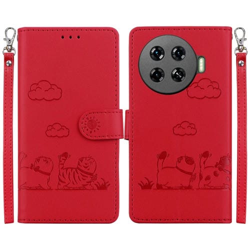 Funda de Cuero Rfid para Tecno Spark 20 Pro+ 4G con Diseño de Gatos (Rojo)