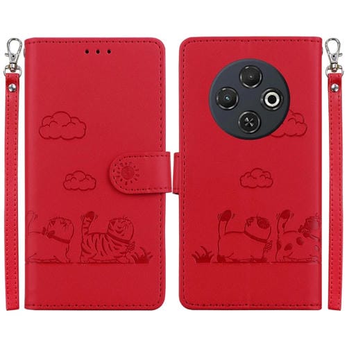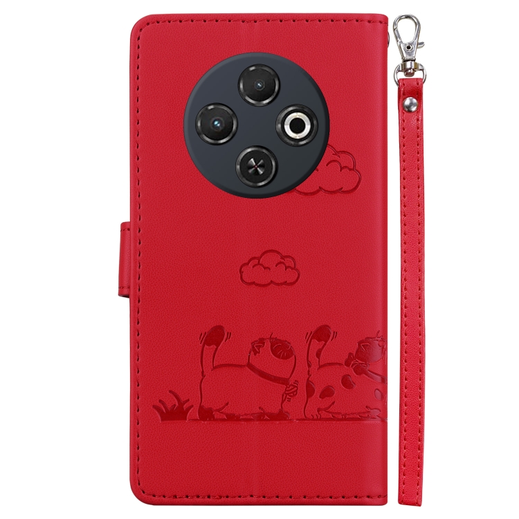 Funda de Cuero Rfid para Tecno Spark 30C con Diseño de Gatos (Rojo)