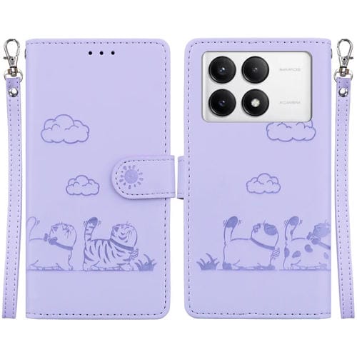 Funda de Cuero Rfid con Diseño de Gatos para Xiaomi Poco F6 Pro (Morada)
