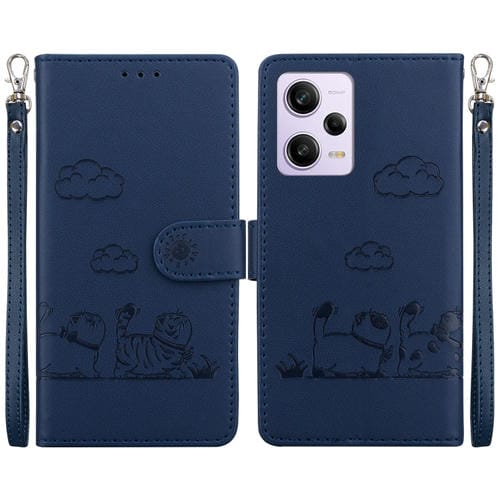 Funda de Cuero Rfid con Diseño de Gatos para Xiaomi Poco X5 Pro (Azul)