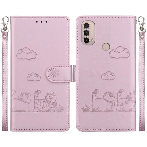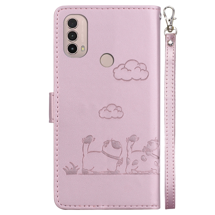 Funda de Cuero Rfid para Motorola Moto E40/E30/E20 con Diseño de Gatos (Oro Rosa)