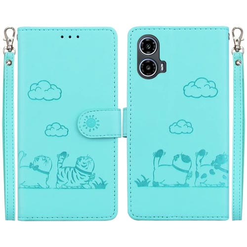 Funda de Cuero Rfid para Motorola Moto G34 5G con Diseño de Gatos (Verde)
