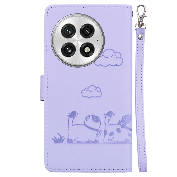Funda de Cuero Rfid para OnePlus 13 con Diseño de Gatos (Morado)