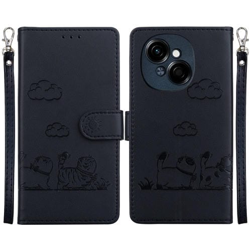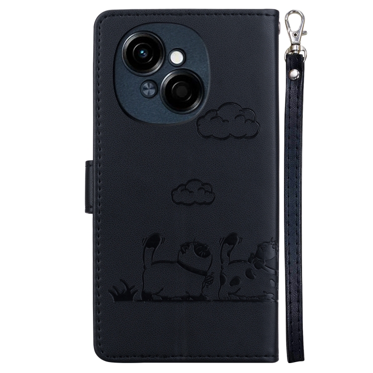 Funda de Cuero Rfid para Tecno Spark Go 1 Pop 9 con Diseño de Gatos (Negra)