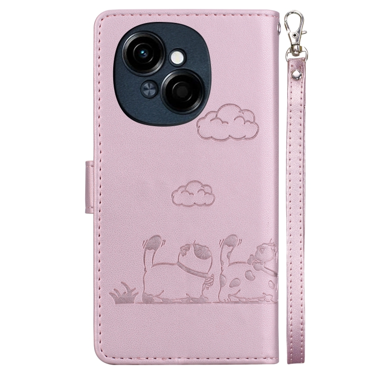 Funda de Cuero Rfid para Tecno Spark Go 1 Pop 9 con Diseño de Gatos (Oro Rosa)
