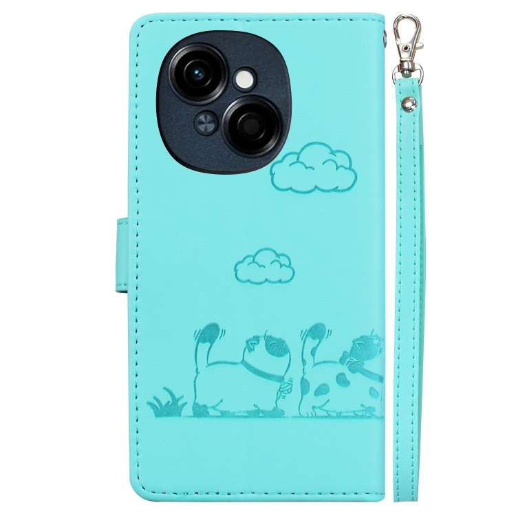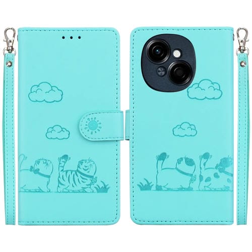 Funda de Cuero Rfid para Tecno Spark Go 1/Pop 9 con Diseño de Gatos (Verde)