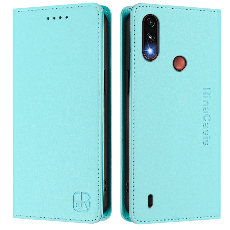 Funda de Cuero Rfid con Doble Pliegue y Succión Magnética para Motorola Moto E7 Power Rc01 (Verde Menta)