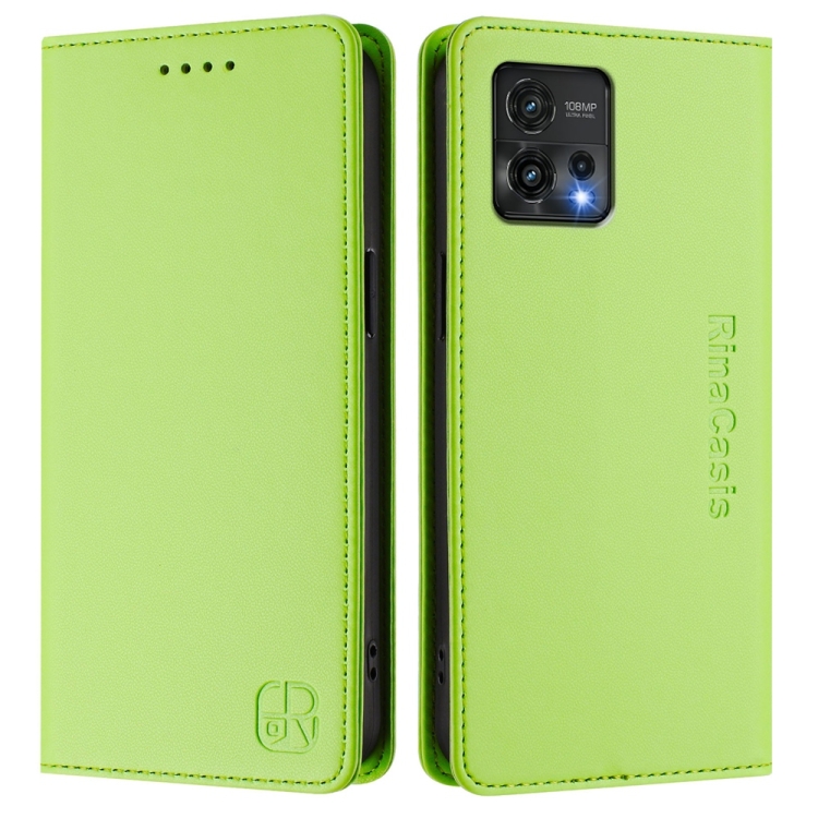 Funda de Cuero Rfid para Motorola Moto G72 Rc01 con Doble Pliegue y Succión Magnética (Verde Hierba)