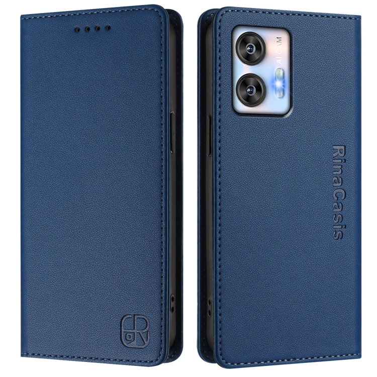 Funda de Cuero Rfid con Doble Pliegue y Succión Magnética para Oukitel C35 Rc01 (Azul Oscuro)