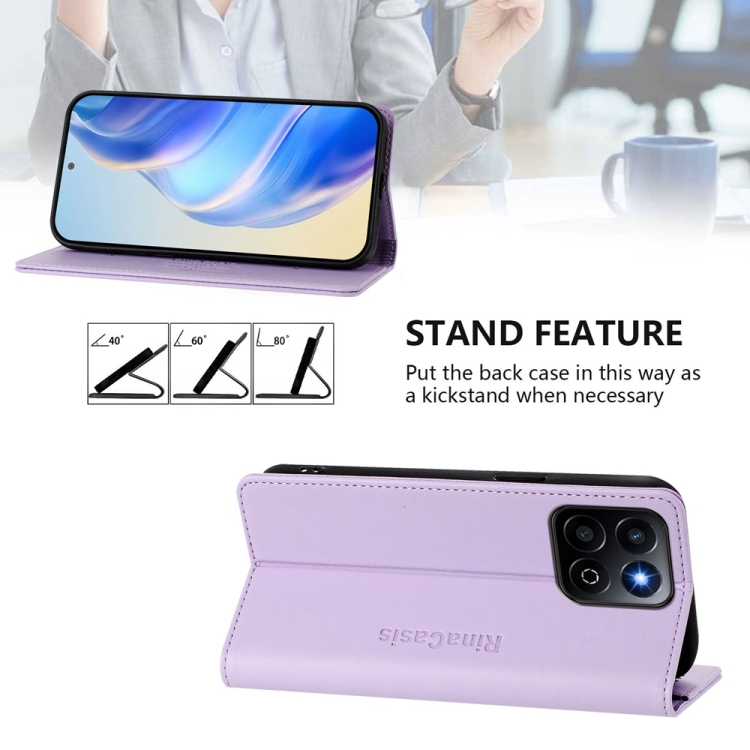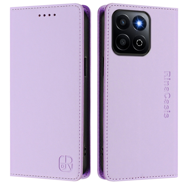 Funda de Cuero con Doble Pliegue y Succión Magnética RFID para Honor 200 Smart Global / X7C 4G Rc01 (Morado Claro)