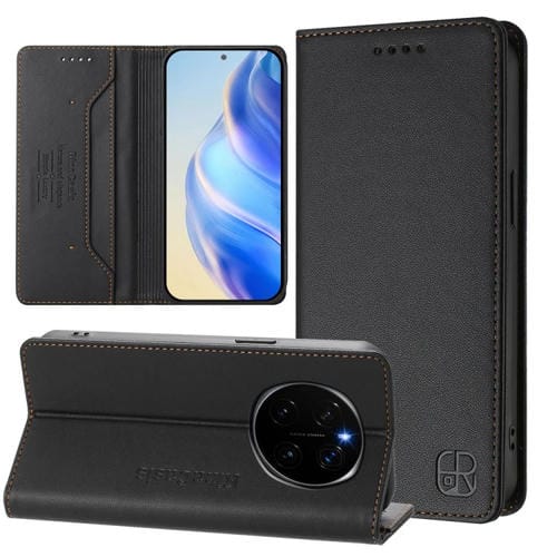 Funda de Cuero Rfid para Honor Magic7 Rc01 con Doble Pliegue y Succión Magnética (Negra)