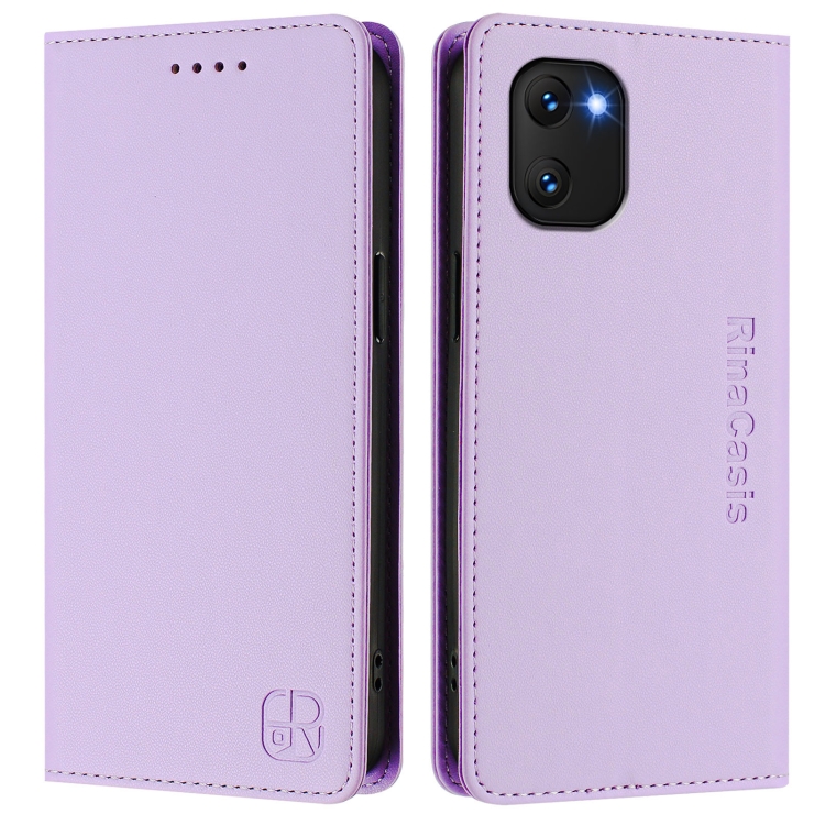 Funda Cuero Rfid Umidigi Power 7/7S Rc01 Doble Pliegue Succión Magnética (Morado Claro)
