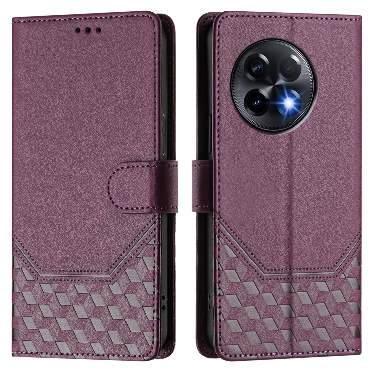 Funda de Cuero Rfid con Relieve Panal Global para OnePlus 11R 5G (Violeta)