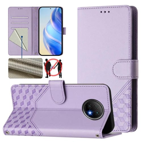 Funda de Cuero Rfid con Relieve de Panal Global para Redmi Note 9T (Morado Claro)