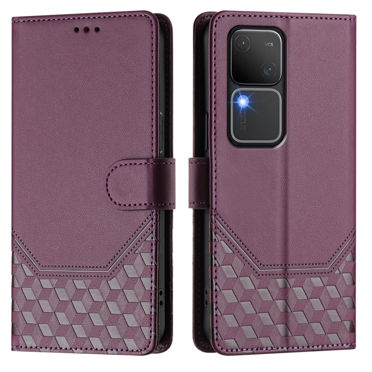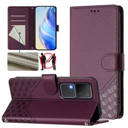 Funda de Cuero Rfid con Relieve de Panal Global para Vivo V30 5G/V30 Pro (Violeta)