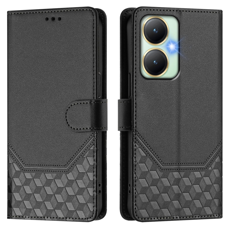 Funda de Cuero Rfid con Relieve de Panal Global para Vivo Y27 4G 2023 (Negra)