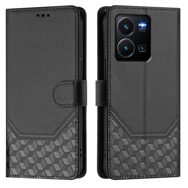Funda de Cuero Rfid con Relieve de Panal Global para Vivo Y35 4G / Y22S 4G / Y22 4G (Negra)