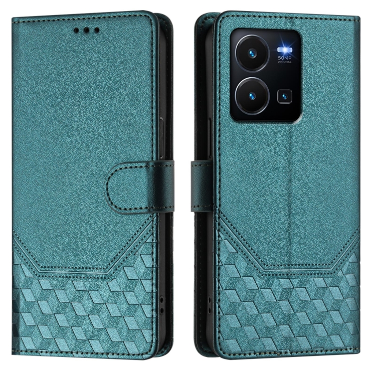 Funda de Cuero Rfid con Relieve de Panal Global para Vivo Y35 4G / Y22S 4G / Y22 4G (Verde Pavo Real)