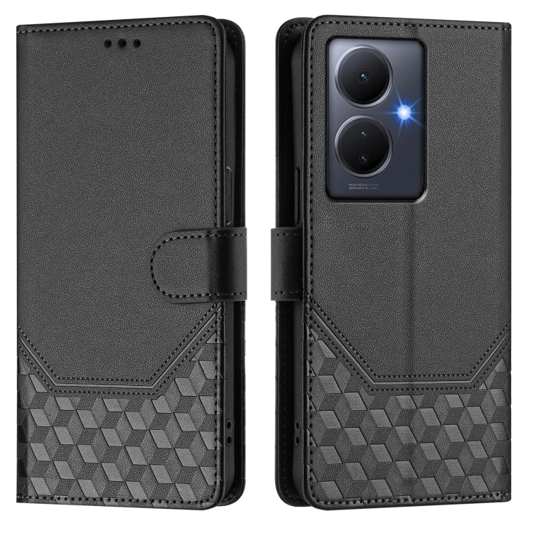 Funda de Cuero Rfid con Relieve de Panal Global para Vivo Y78+ 5G / Y78 5G (Negra)