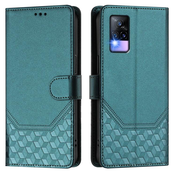 Funda de Cuero Rfid con Relieve de Panal para Vivo V20/Y73 2021 (Verde Pavo Real)