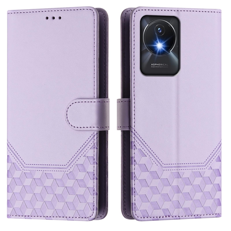 Funda de Cuero Rfid con Relieve de Panal para Vivo Y02A 4G / Y02 4G / Y11 2023 / Y02T (Morado Claro)