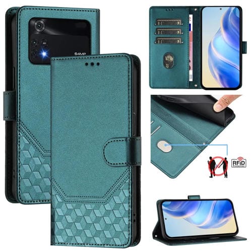 Funda de Cuero Rfid con Relieve de Panal para Xiaomi Poco M4 Pro 4G (Verde Pavo Real)