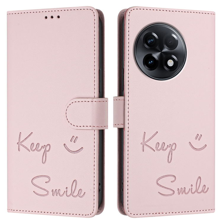 Funda de Cuero Rfid con Relieve Sonrisa Global para OnePlus 11R 5G (Rosa)