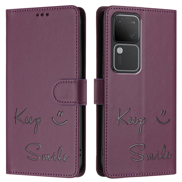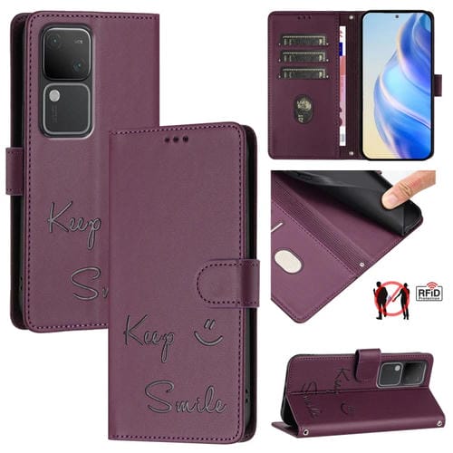 Funda de Cuero Rfid con Relieve de Sonrisa Global para Vivo V30 Pro 5G (Violeta)