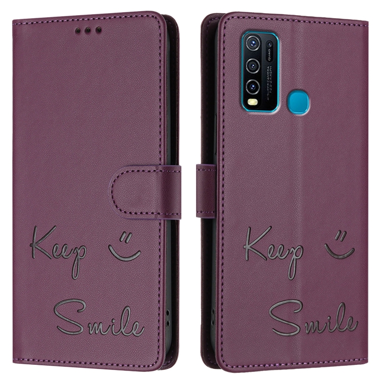 Funda de Cuero Rfid con Relieve de Sonrisa Global para Vivo Y30 4G (Violeta)